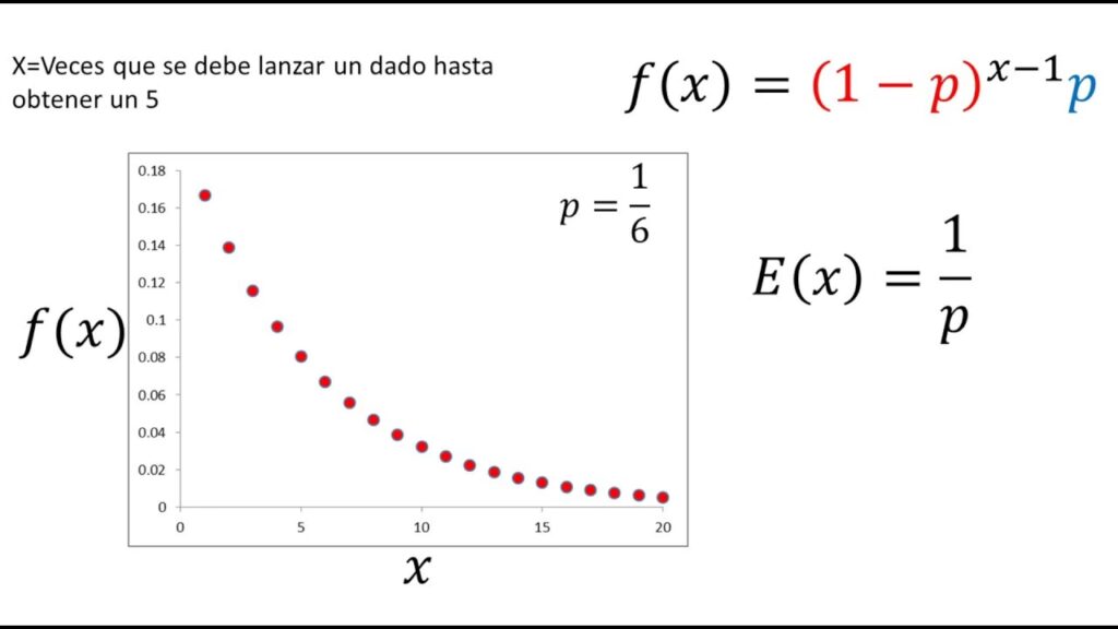- Juegos de Azar: Si estás jugando un juego donde hay una probabilidad 'p' de ganar en cada intento, la distribución geométrica puede predecir cuántas veces tendrás que jugar hasta que ganes por primera vez. Por ejemplo, cuántos lanzamientos de dados hasta obtener un '6'.