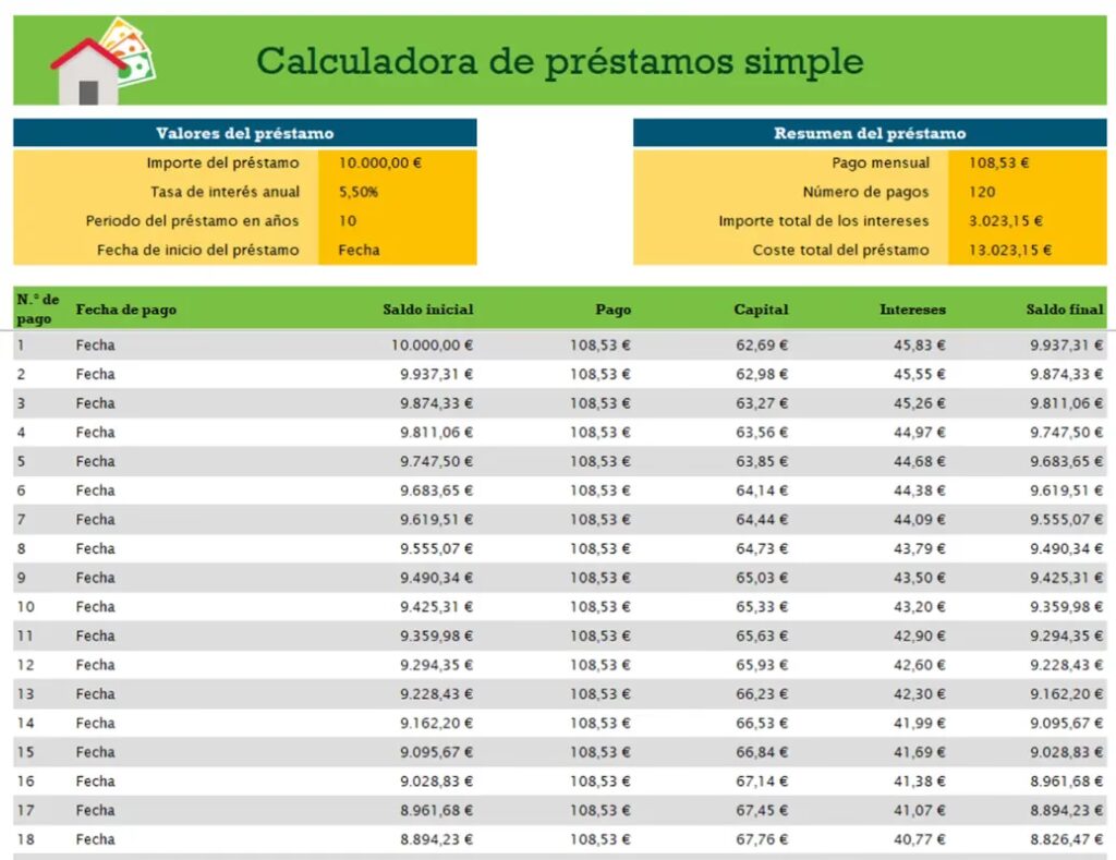 - Plazo de Devolución: El número de meses o años en los que planeas pagar el préstamo.
