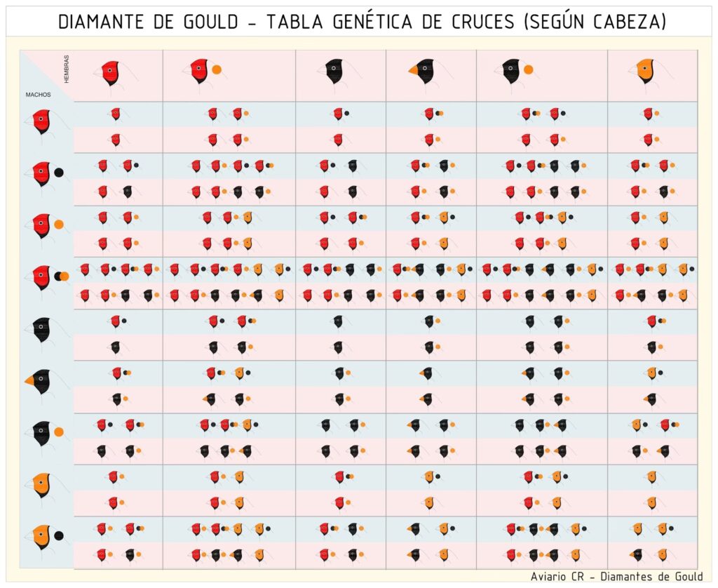 En la naturaleza, existen tres variaciones de color principales en el Diamante de Gould, basadas en el color de su cabeza: