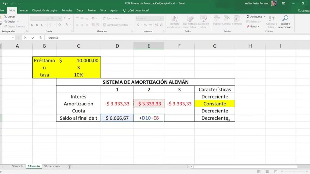 Excel es una herramienta muy potente para simular y calcular préstamos. Si bien no hay una función única que calcule directamente todo el plan de amortización alemán en una sola celda, puedes construir una tabla de amortización completa paso a paso.