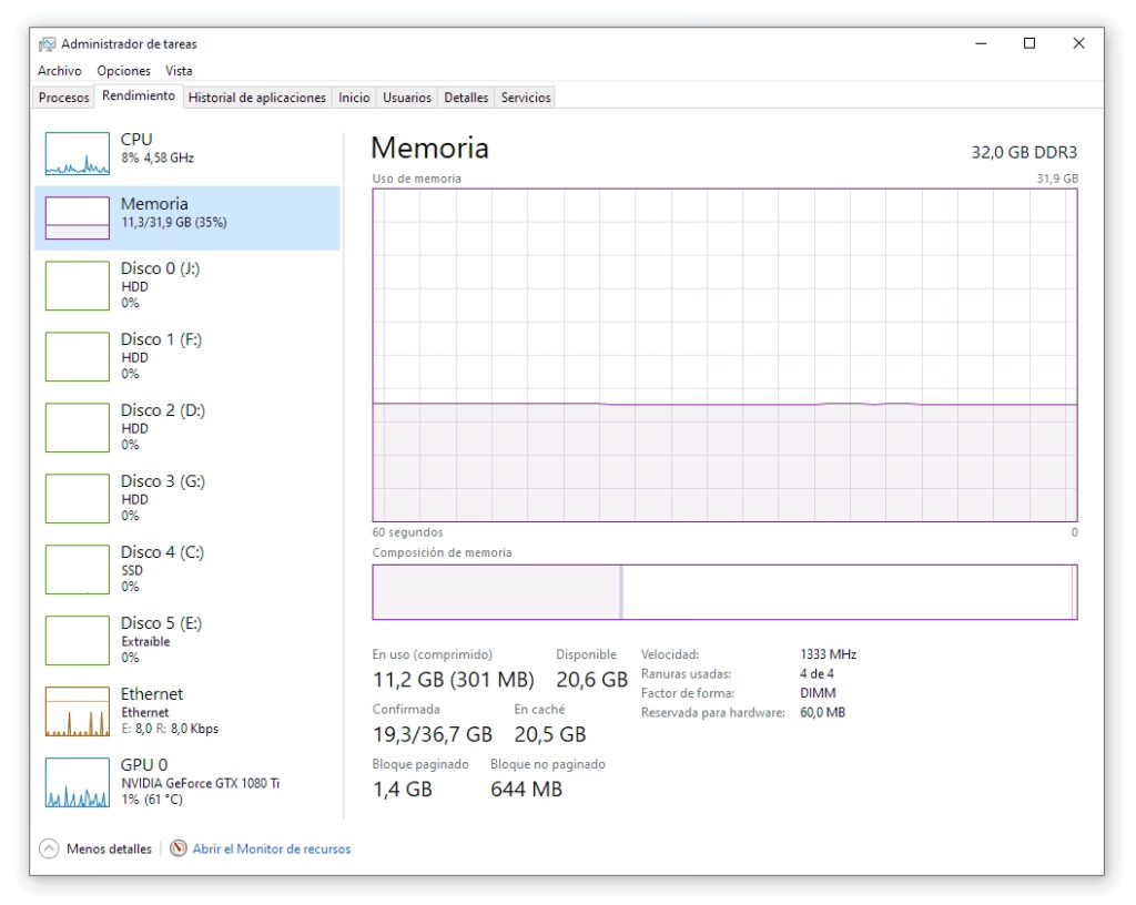 Debajo del gráfico de uso de la memoria, encontrarás el texto “Ranuras usadas”. Este indicador te mostrará dos valores: el primero, la cantidad de ranuras que están actualmente ocupadas por módulos de RAM, y el segundo, el total de ranuras disponibles en tu sistema. Por ejemplo, si ves “2 de 4”, significa que tu placa base tiene un total de cuatro ranuras de memoria RAM, de las cuales dos están siendo utilizadas. Además de esta información crucial, el Administrador de Tareas también suele mostrar el factor de forma de la memoria (DIMM para escritorios, SO-DIMM para portátiles), la cantidad total de RAM instalada y la frecuencia a la que está operando.