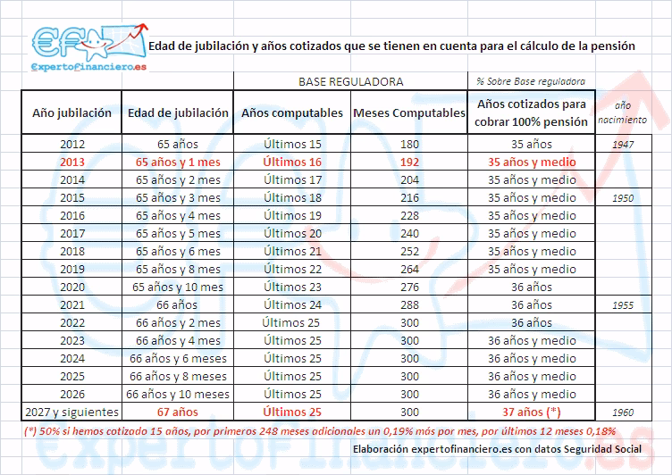 | Con menor carrera de cotización | 66 años y 8 meses | Cualquier cantidad por debajo de 38 años y 3 meses (mínimo general de 15 años) |
