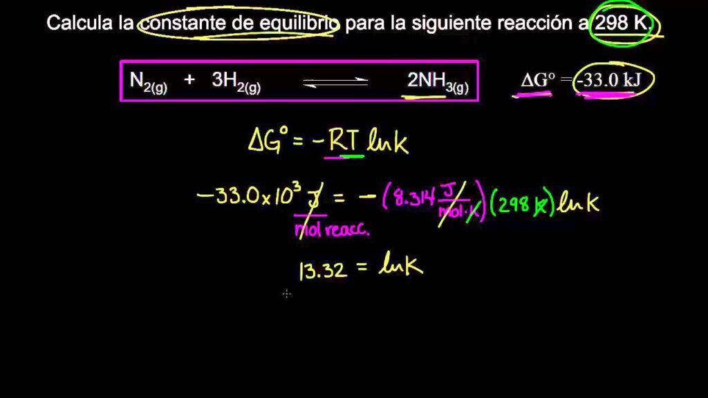 Cuando ΔG = 0, el sistema está en equilibrio químico. Esto significa que las velocidades de la reacción directa e inversa son iguales, y no hay un cambio neto en las concentraciones de reactivos y productos. La Energía Libre de Gibbs también está relacionada con la constante de equilibrio (K) a través de la ecuación ΔG° = -RT ln K, donde ΔG° es el cambio de energía libre estándar, R es la constante de los gases y T es la temperatura absoluta. Esta ecuación muestra una conexión profunda entre la termodinámica y el equilibrio de las reacciones.