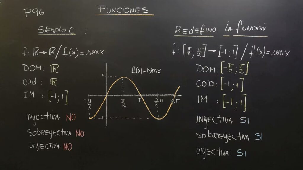 En cuanto a las funciones trigonométricas, como f(x) = sin(x) o f(x) = cos(x), no son inyectivas en su dominio natural (todos los números reales) debido a su naturaleza periódica. Por ejemplo, sin(0) = 0, sin(π) = 0, sin(2π) = 0, etc. La línea horizontal y = 0 cruza el gráfico de sin(x) infinitas veces. Sin embargo, si restringimos el dominio de sin(x) a un intervalo como [-π/2, π/2], entonces la función sí es inyectiva dentro de ese dominio restringido, lo que permite la definición de su función inversa, el arcoseno.