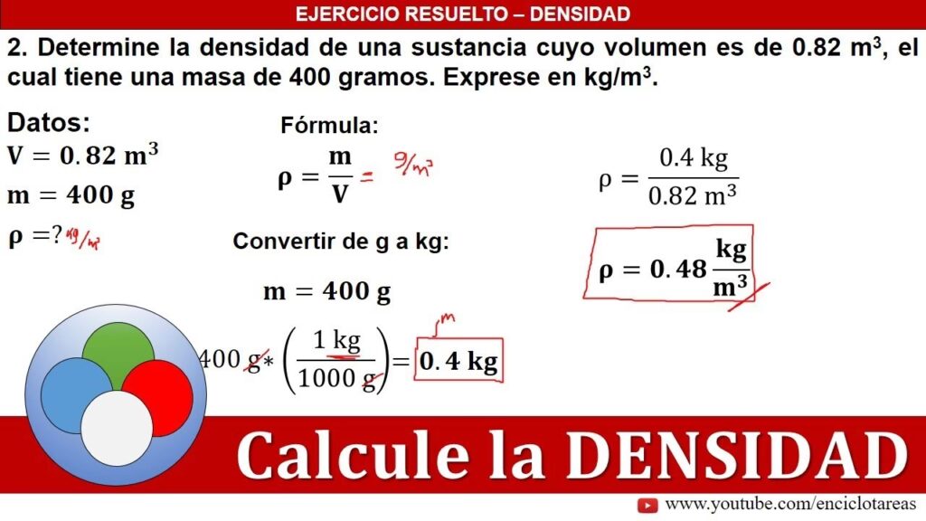 - Expresa el Resultado: Asegúrate de incluir las unidades correctas en tu respuesta (por ejemplo, g/cm³ o kg/m³).