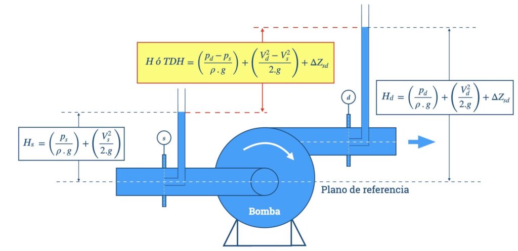 Es la presión del fluido en el punto de salida de la bomba, que representa la energía impartida al fluido para moverlo a través del sistema y superar resistencias.