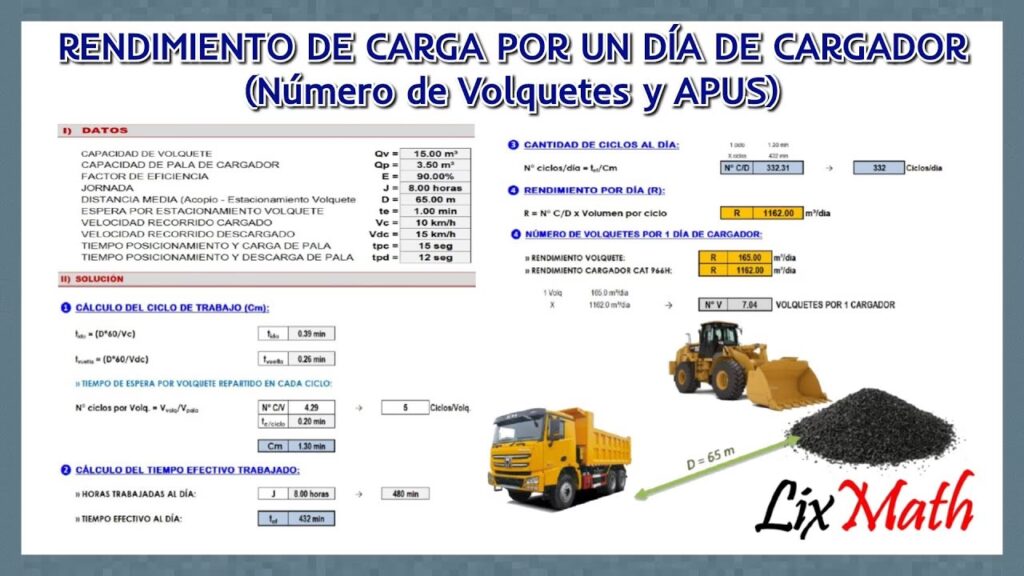 El rendimiento de un cargador frontal es una medida crucial de su eficiencia y productividad, indicando cuánto material puede mover en un período de tiempo determinado. Para determinarlo, es esencial calcular el número de ciclos por hora, lo cual se logra estableciendo la eficiencia de la operación.