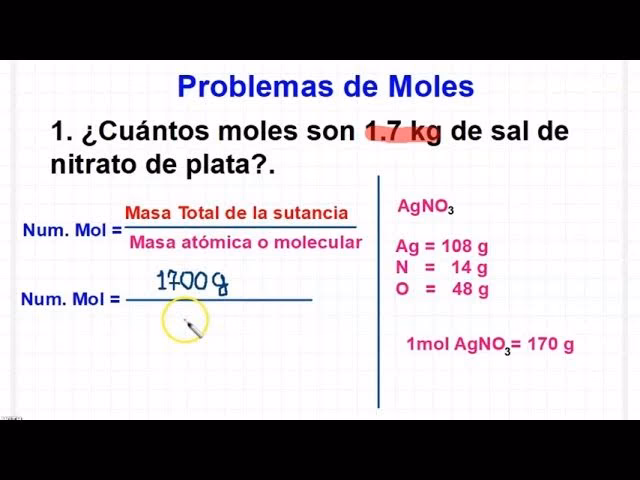 1. Moles = Gramos / Peso Molecular (o Masa Molar)