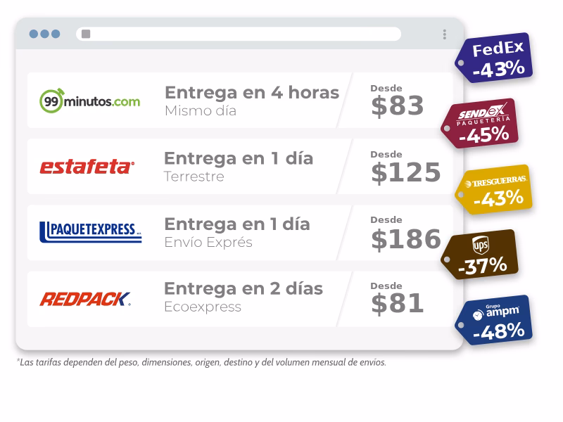 - Tipo de Servicio: ¿Necesitas que llegue rápido? ¿A domicilio o a sucursal? Los servicios express, con entrega a domicilio o con seguros adicionales, tienen costos más elevados.