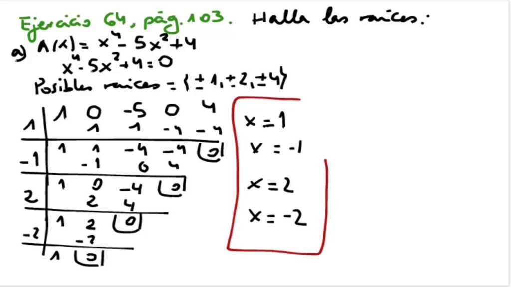 - Paso 3: Encontrar las raíces del polinomio reducido.