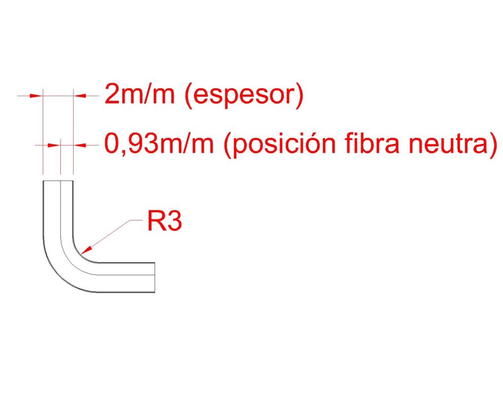 - t: Espesor de la línea central en el doblez. Esta es la distancia desde la superficie interior del material hasta la línea neutra.