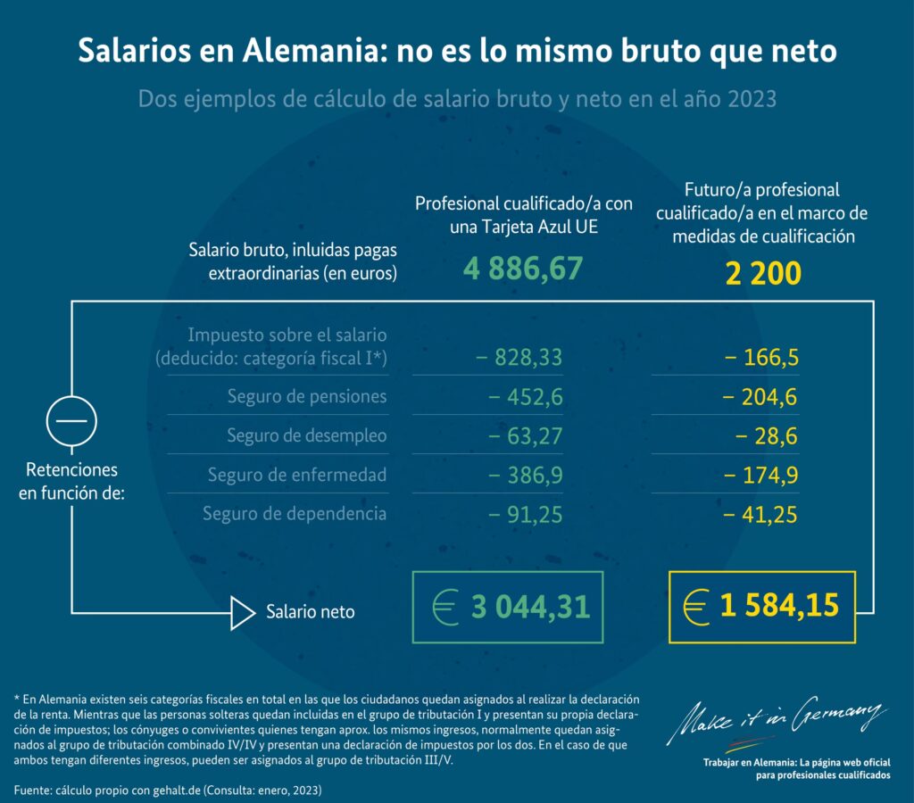 Es importante destacar que la diferencia entre el salario bruto y el neto en Alemania es considerable. En promedio, las deducciones por impuestos y contribuciones representan entre el 30% y el 45% del salario bruto, dependiendo en gran medida de tu clase fiscal y el nivel de ingresos. Esto significa que un salario bruto de 3.000 euros podría resultar en un neto de aproximadamente 2.000 euros, una reducción significativa que debe ser tenida en cuenta al planificar tus finanzas.