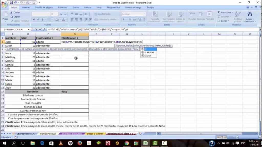 - Ingresa los Datos: Abre una hoja de cálculo de Excel e ingresa las edades de las personas (o la antigüedad de las cuentas) en una columna. Por ejemplo, podrías tener las edades en las celdas A1, A2, A3, y así sucesivamente.