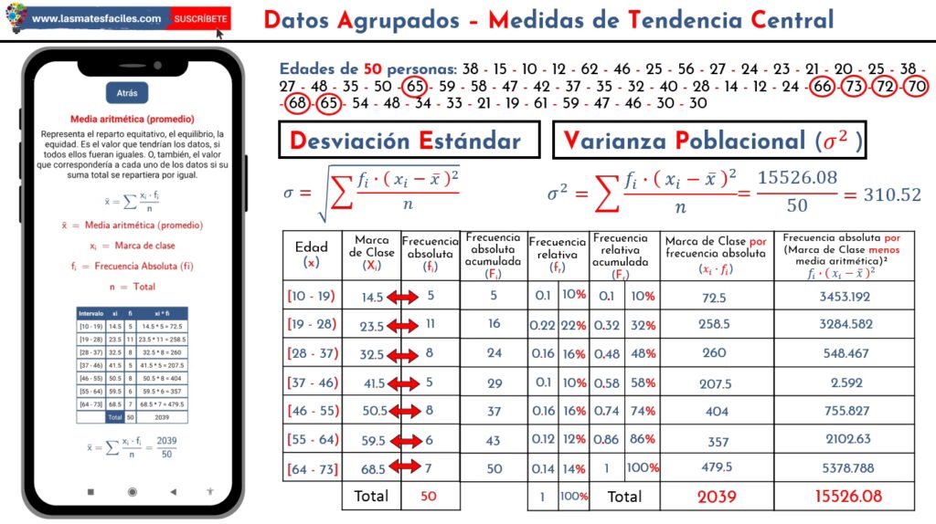 - Tomar la Raíz Cuadrada: Finalmente, calcula la raíz cuadrada del valor obtenido en el paso 5. Este resultado es la desviación estándar (σ).