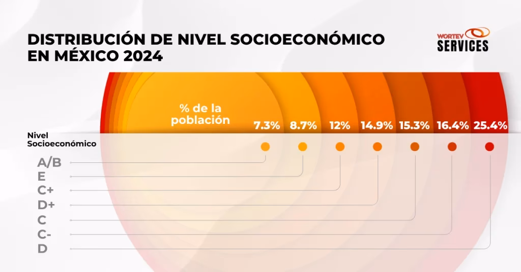 - Nivel Socioeconómico Medio (C/C-): Uno de los segmentos más amplios y relevantes, con capacidad de adquirir bienes y servicios adicionales.