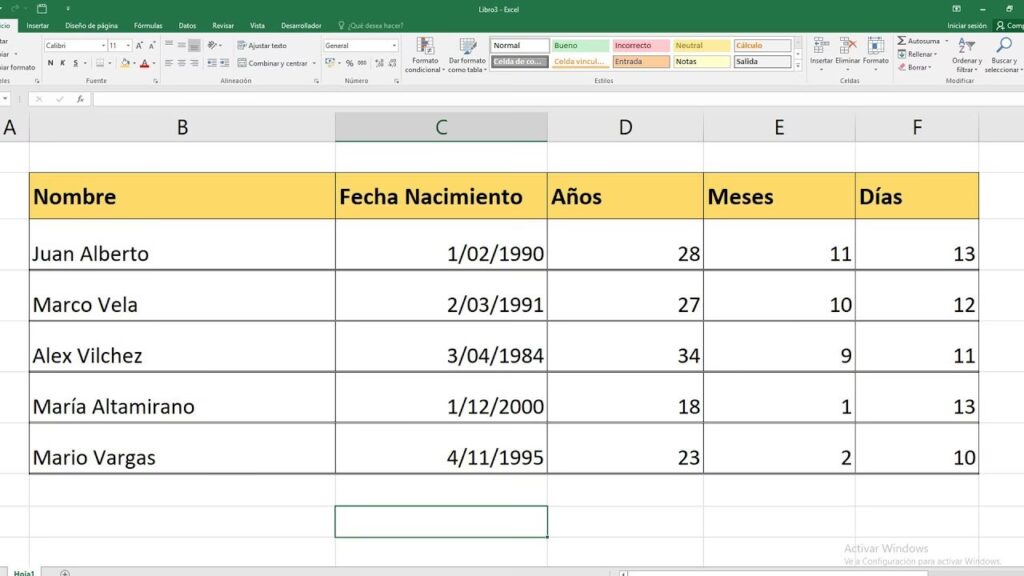 A continuación, te guiaremos a través de un proceso sencillo para calcular la antigüedad o edad utilizando la función DATEDIF. Este método te permitirá crear un gráfico dinámico que calculará instantáneamente la edad o antigüedad de una persona.