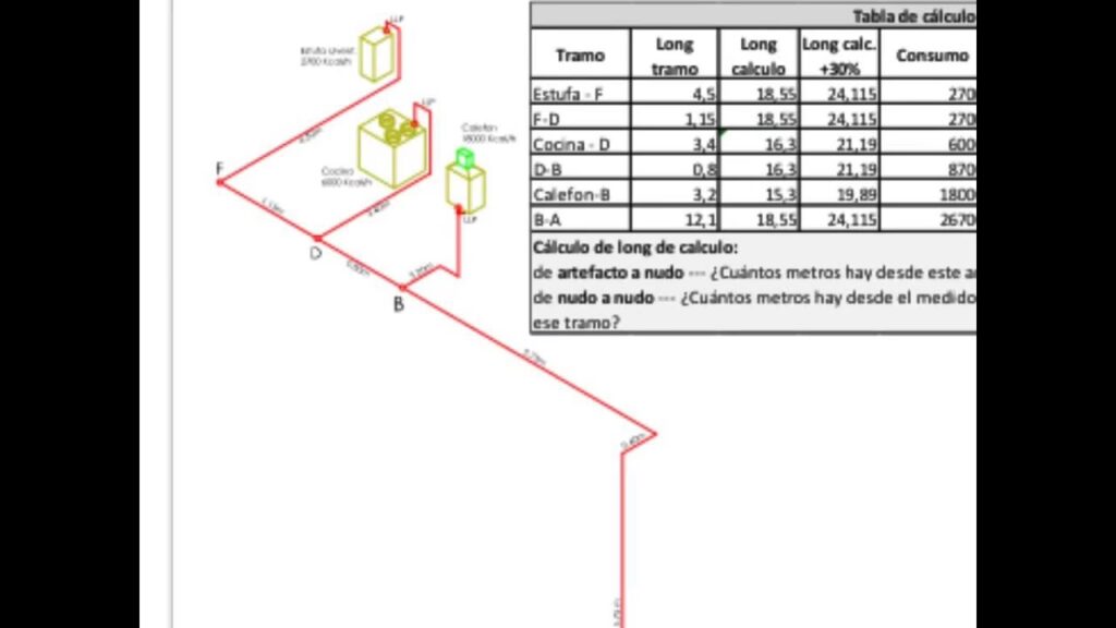 Estos cálculos suelen realizarse utilizando tablas de dimensionamiento de tuberías de gas o software especializado, siempre siguiendo las normativas locales vigentes.
