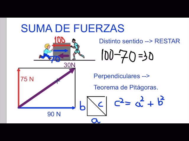No, el Teorema de Pitágoras solo es aplicable directamente para calcular la fuerza resultante cuando las dos fuerzas que interactúan son estrictamente perpendiculares entre sí. Si las fuerzas son colineales (mismo o sentido opuesto) o forman cualquier otro ángulo, se deben usar métodos diferentes, como la suma/resta directa o la Ley de los Cosenos, respectivamente. Sin embargo, el Teorema de Pitágoras es fundamental cuando se descomponen múltiples fuerzas en sus componentes rectangulares (Fx y Fy) para luego encontrar la resultante total.