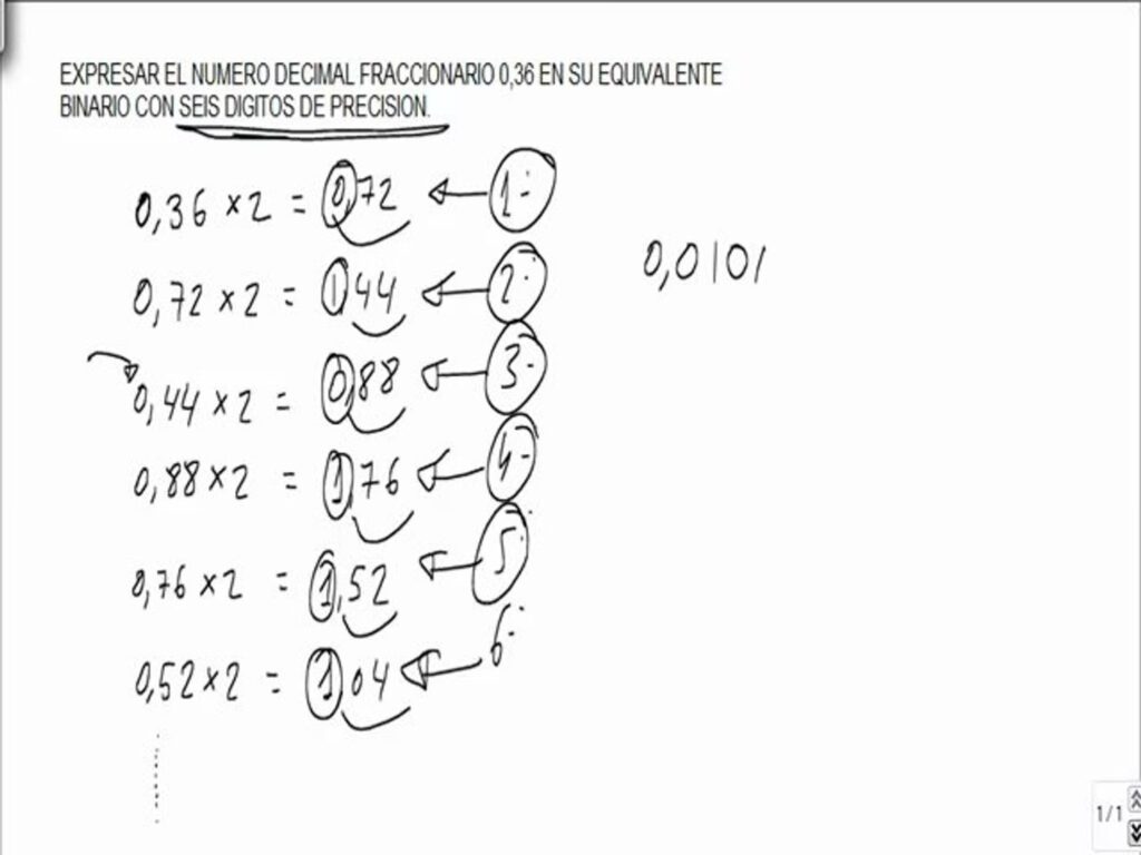 Aunque el objetivo principal es la conversión de binario a decimal, es útil conocer el proceso inverso para entender completamente la relación entre ambos sistemas. Para convertir una fracción decimal a binario, se utiliza un método de multiplicaciones sucesivas.