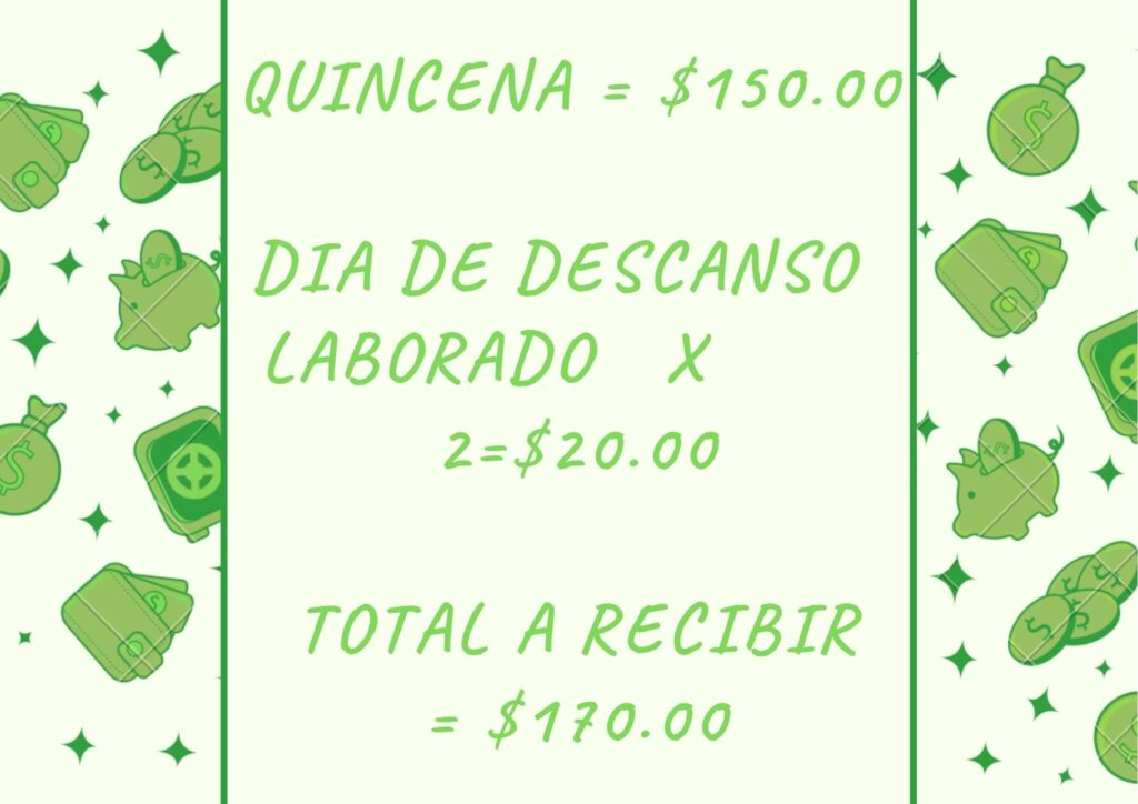 Los días de descanso obligatorio deben ser remunerados al 100% del salario diario del trabajador. Si un empleado trabaja en un día de descanso obligatorio (ya sea semanal o un feriado nacional), la empresa debe pagarle el doble de su salario diario, adicional a su salario normal por ese día, según lo estipulado por el artículo 75 de la Ley Federal del Trabajo. En esencia, se paga un triple de lo que normalmente ganaría en un día.