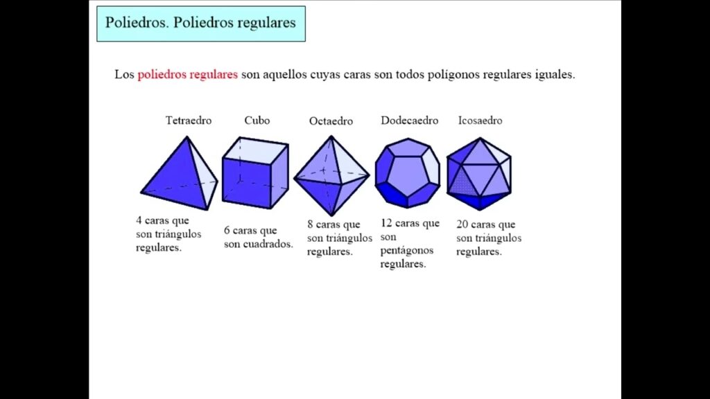 - Una cara es una superficie plana que forma parte del límite del poliedro. Son las 'paredes' de la figura (ej. los cuadrados de un cubo o los triángulos de un tetraedro).