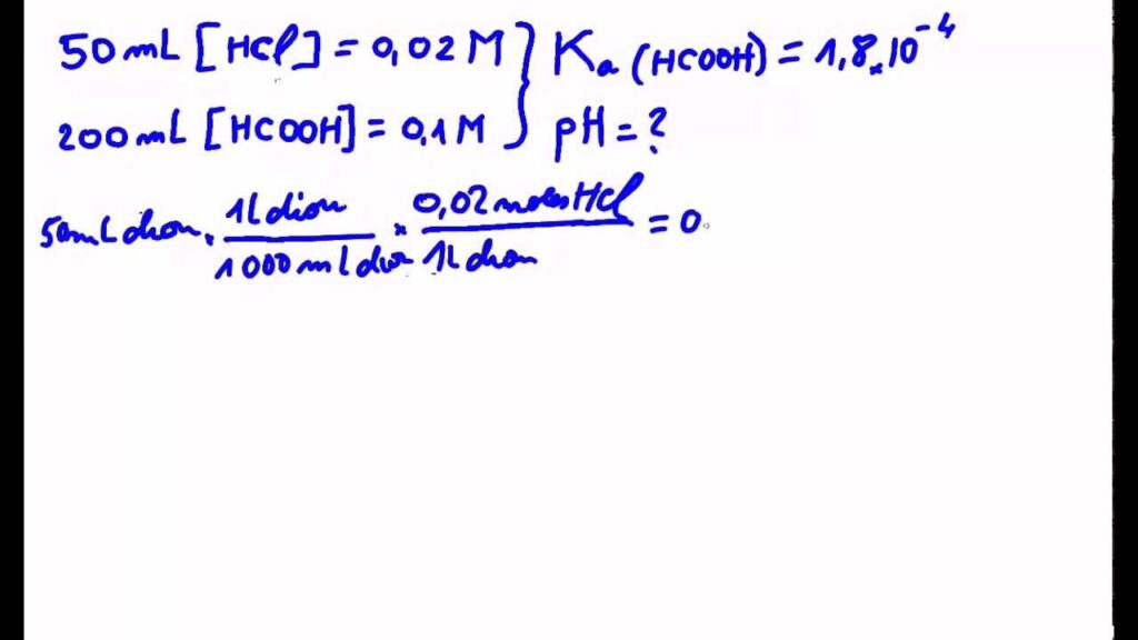 Consideremos una mezcla de ácido clorhídrico (HCl), un ácido fuerte, y ácido fórmico (HCHO₂), un ácido débil. Si la concentración inicial de HCl en la mezcla es 0.0020 M, podemos calcular el pH de la solución de la siguiente manera: