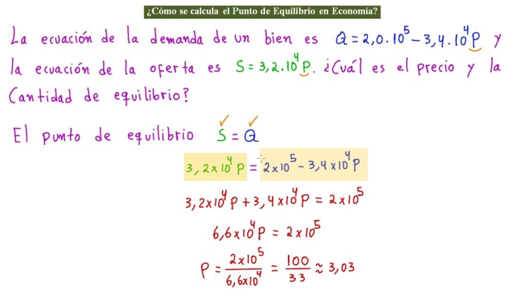 - Igualar la función de oferta y demanda: En el equilibrio, la cantidad ofrecida es igual a la cantidad demandada (Qo = Qd).