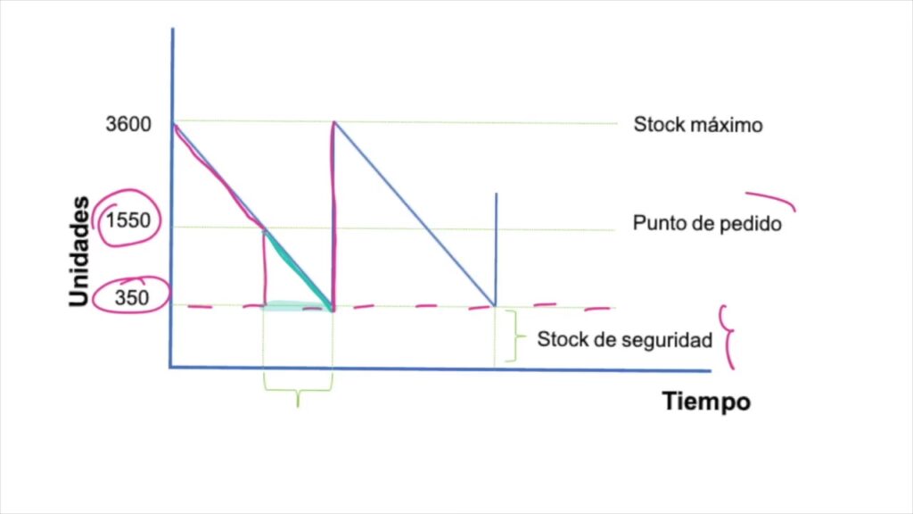 Utilizando el stock de seguridad calculado anteriormente (1.150 unidades) y los datos de demanda y plazo de entrega: