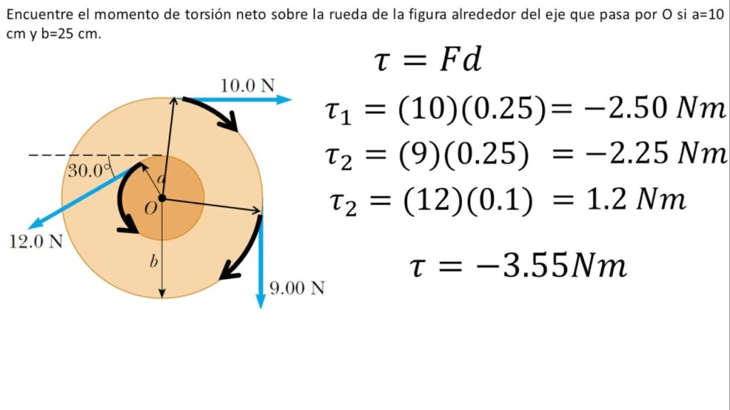 El cálculo del torque es fundamental en muchas aplicaciones de la física y la ingeniería. La fórmula general para la magnitud del torque (τ) producido por una fuerza (F) aplicada a una distancia (r) desde el pivote es:
