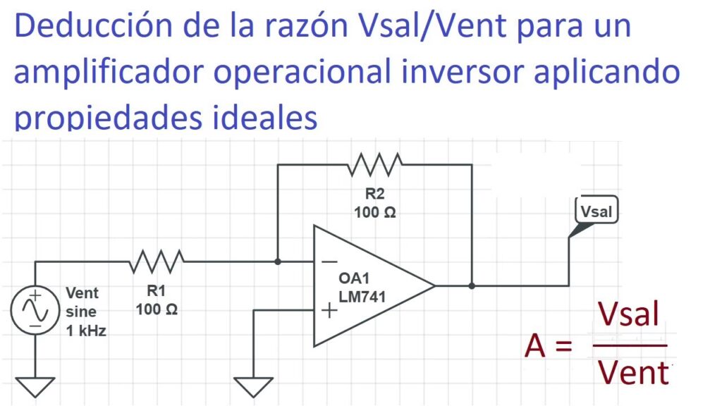 Circuito: La entrada no inversora (V+) está conectada a tierra (0V). La señal de entrada (Vin) se aplica a la entrada inversora (V-) a través de una resistencia (R1). Una resistencia de retroalimentación (Rf o R2) conecta la salida (Vout) a la entrada inversora (V-).