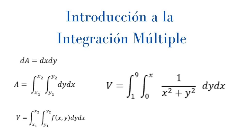 Las integrales múltiples son una generalización de la integral definida a funciones de varias variables. Mientras que una integral simple opera sobre un intervalo unidimensional, una integral múltiple opera sobre una región en un espacio de dimensiones superiores. Dependiendo del número de variables de la función y de la dimensión de la región de integración, distinguimos principalmente entre integrales dobles e integrales triples, aunque el concepto se extiende a cualquier número de dimensiones.