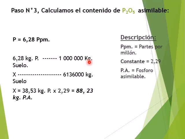 P2O5aplicado = (16 kg MAP/ha X 61%) / 100 = 9.76 kg de P2O5 por hectárea