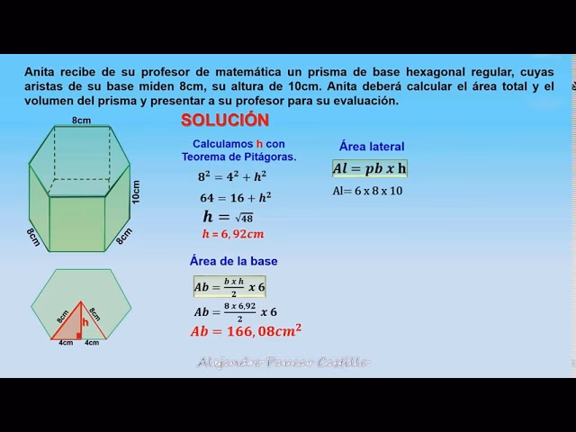 Para calcular la altura de un prisma hexagonal, el primer paso crucial es determinar el área de su base hexagonal (A_hex). Para un hexágono regular, la fórmula es: