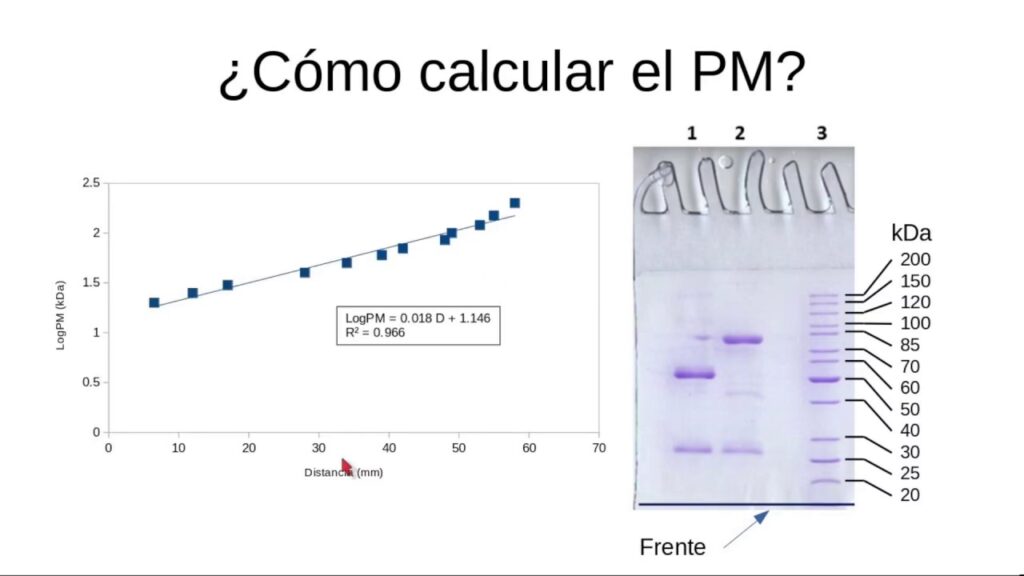 - Determinación del Peso Molecular: Comparando la migración de una proteína desconocida con un marcador de peso molecular (un cóctel de proteínas de tamaño conocido).
