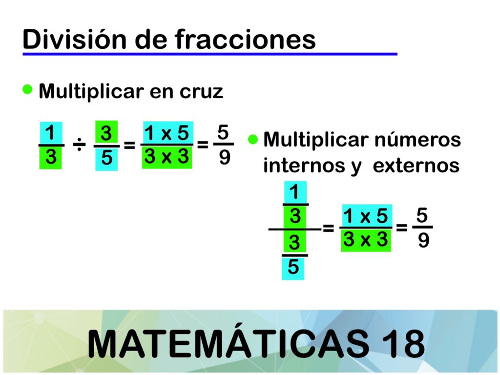 Para dividir fracciones, se utiliza un método conocido como "multiplicar por el recíproco" o "invertir y multiplicar". El recíproco de una fracción se obtiene simplemente invirtiendo el numerador y el denominador.