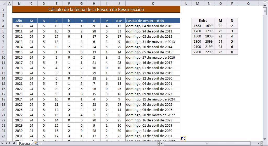 Pascua Occidental: Se calcula utilizando el calendario gregoriano, que fue introducido en 1582 y es el calendario civil más utilizado en el mundo hoy en día. Su rango de fechas es del 22 de marzo al 25 de abril.