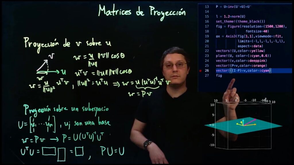 En el vasto universo del álgebra lineal, existen herramientas que, aunque abstractas en su concepción, poseen un poder inmenso para resolver problemas prácticos en campos tan diversos como la ciencia de datos, la ingeniería o los gráficos por computadora. Una de estas herramientas fundamentales es la matriz de proyección. Este concepto nos permite entender cómo un vector "se proyecta" o "cae" sobre un subespacio, encontrando el punto más cercano dentro de ese subespacio. Es, en esencia, una forma de simplificar y aproximar información, conservando solo lo relevante respecto a una dirección o plano específico.