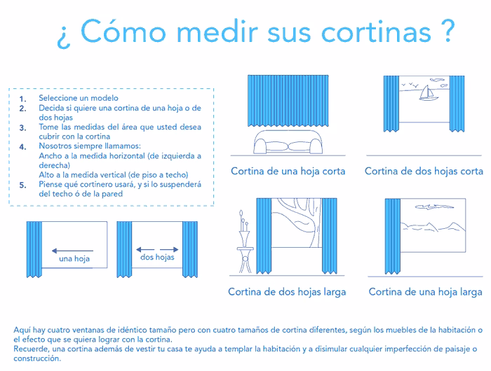 La caída es la longitud vertical de la cortina, desde el punto de fijación hasta donde deseas que termine. La forma de medir varía ligeramente según el tipo de sistema que utilices: