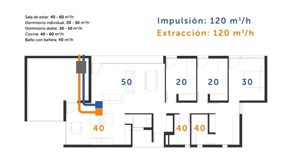 - Tasas de renovación bajas: Puede haber bajas tasas de renovación de aire en condiciones climáticas desfavorables.