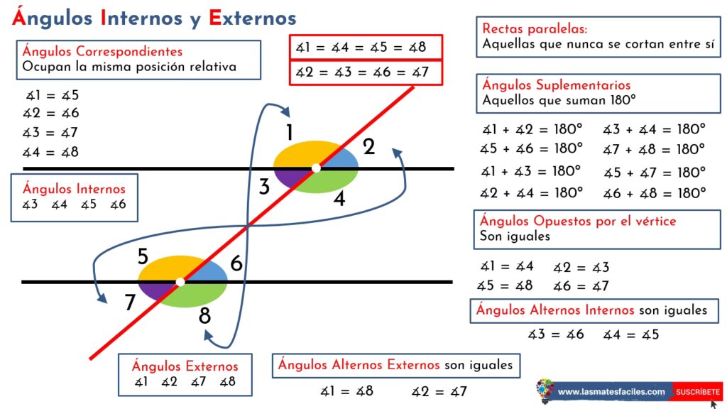 En el vasto y fascinante mundo de la geometría, el estudio de las líneas y los ángulos es fundamental. Comprender cómo interactúan entre sí cuando son cortadas por una línea que las atraviesa, conocida como transversal, es la clave para desentrañar muchos misterios matemáticos. Entre las diversas parejas de ángulos que se forman en estas configuraciones, los ángulos alternos externos ocupan un lugar especial. Son un concepto esencial no solo para estudiantes, sino para cualquiera que desee apreciar la lógica y la belleza inherente a las formas y estructuras que nos rodean. En este artículo, profundizaremos en qué son exactamente los ángulos alternos externos, cómo se forman y, lo más importante, cómo se halla y se interpreta su medida.