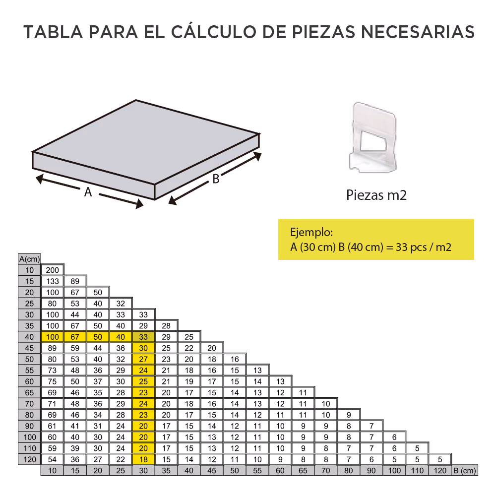 - Baldosas Pequeñas (hasta 30x30 cm): Podrías necesitar 4 niveladores por baldosa (uno en cada esquina), lo que en un m2 podría significar menos de 8 niveladores si las juntas son pequeñas.
