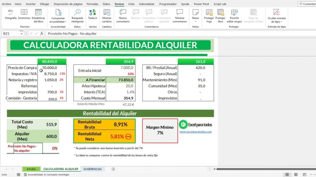 Recuerda que el mercado inmobiliario es dinámico. Las condiciones pueden cambiar, y lo que hoy es una buena rentabilidad o un alquiler asequible, mañana podría no serlo. Mantente informado y revisa tus cálculos periódicamente.