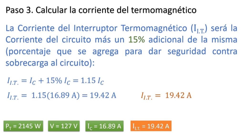 Este es el primer paso y el más fundamental. La corriente nominal del interruptor debe ser ligeramente superior a la corriente máxima de operación esperada en el circuito, pero siempre menor que la capacidad de corriente del cable que protege. Para calcularla: