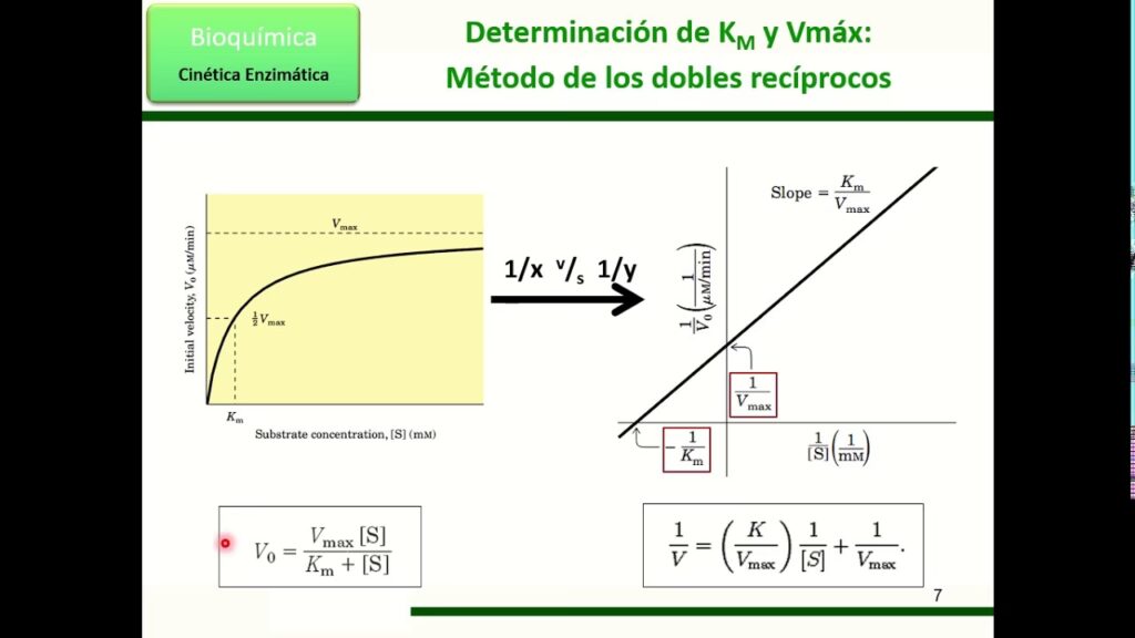 1/v = (pendiente) * (1/[S]) + (intersección Y)