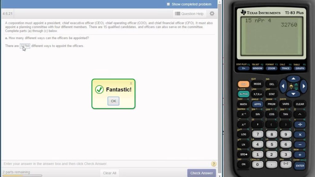 nPronCrsegún si el orden importa o no en tu problema. - Ingresa el valor de 'r': Finalmente, teclea el número de elementos que deseas seleccionar o disponer. Por ejemplo, si son 3 lugares en el podio, teclea