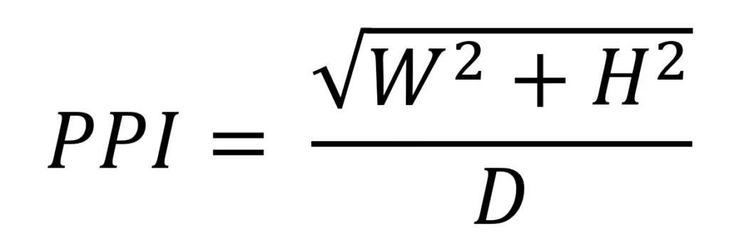 PPI = √(ancho_pixeles2 + alto_pixeles2) / diagonal_pulgadas