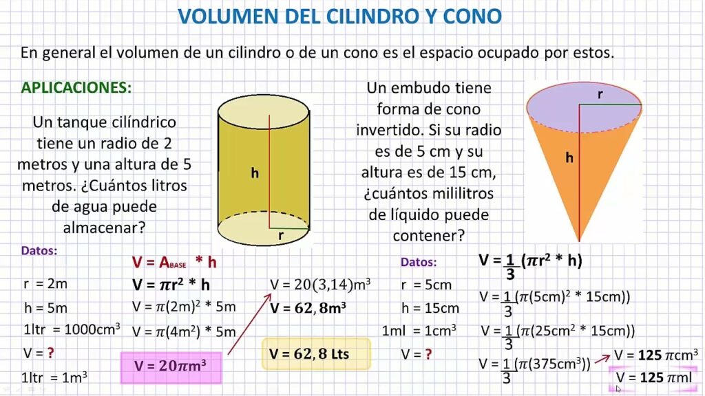 A menudo nos preguntamos, ¿cuál es el volumen de un cono cónico? La respuesta reside en una fórmula elegante y directa que vincula la altura y el radio de la base de esta forma tridimensional. Dominar esta fórmula no solo te permitirá resolver problemas académicos, sino también aplicar estos conocimientos en situaciones prácticas. En este artículo, desglosaremos la fórmula, te guiaremos a través de un ejemplo detallado, y exploraremos conceptos relacionados para que el cálculo del volumen de cualquier cono sea pan comido para ti.