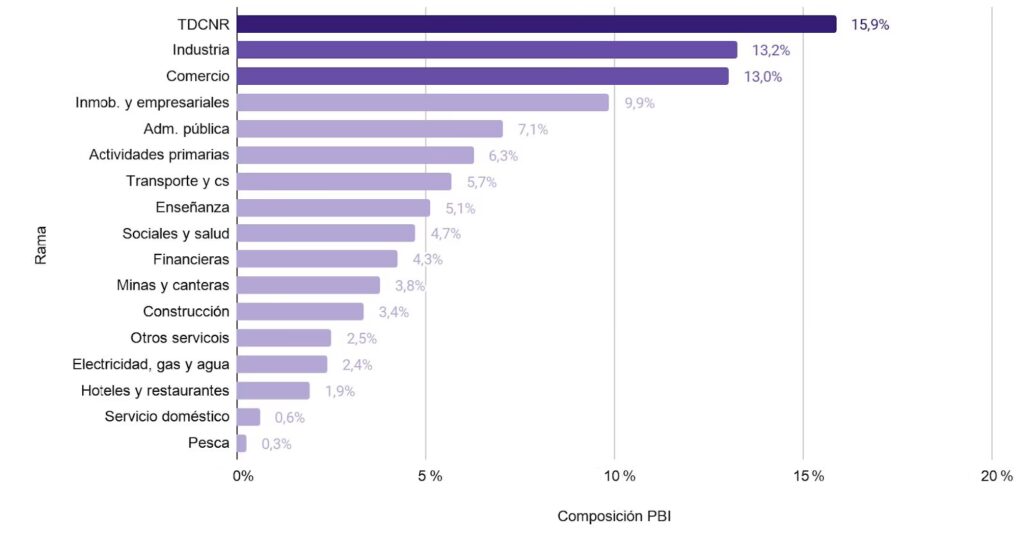 - Comparar el peso del sector TDCNR con el resto de los sectores productivos.