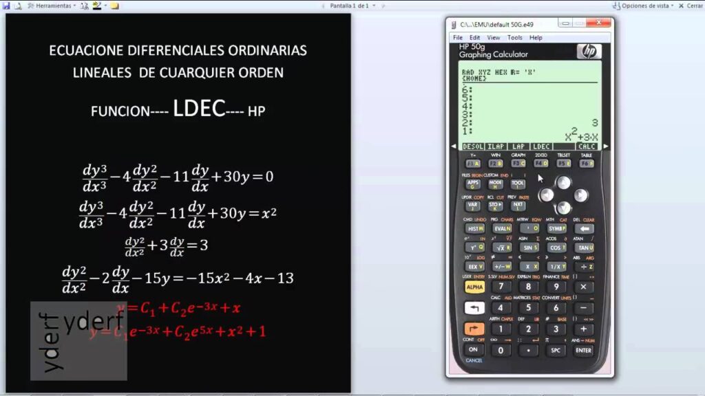 dy/dx,d^2y/dx^2, etc.). Calcula estas derivadas de tu solución candidata. Aquí es donde tu calculadora puede ayudarte enormemente con la diferenciación simbólica si es una CAS, o al menos verificando los cálculos numéricos en puntos específicos. - Sustituye en la Ecuación Diferencial: Una vez que tengas la solución candidata y sus derivadas, sustitúyelas en la ecuación diferencial original.